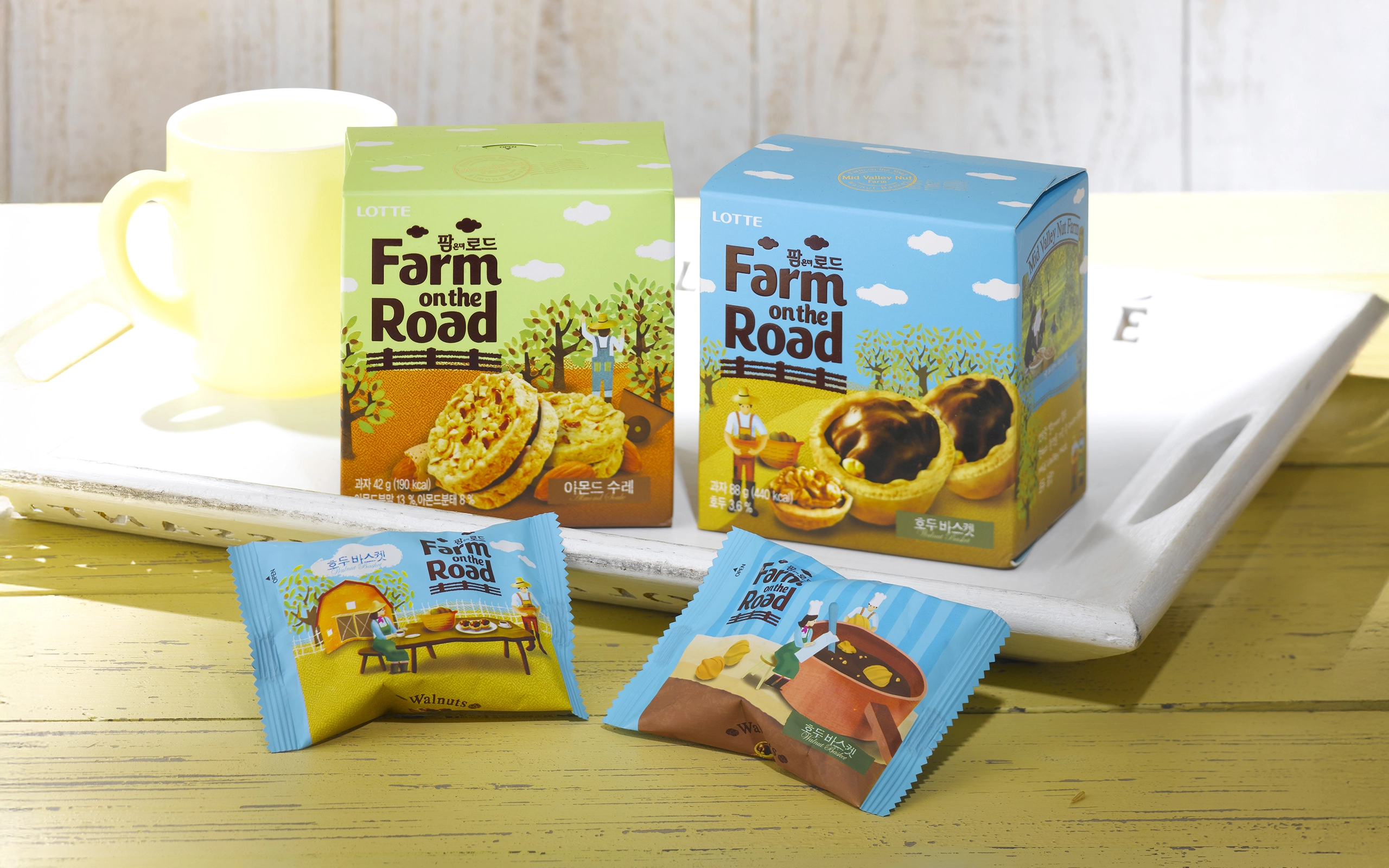 한국의 롯데그룹은 식품뿐만 아니라 백화점, 마트, 호텔, 테마파크, 화학, 건설 등 다양한 사업을 전개하며 한국 경제에서 중요한 역할을 하고 있다. 롯데의 과자 브랜드 ‘Farm on the Road’는 식품업계에서 프리미엄 라인의 등장이 두드러지는 시기에 출시되었다.