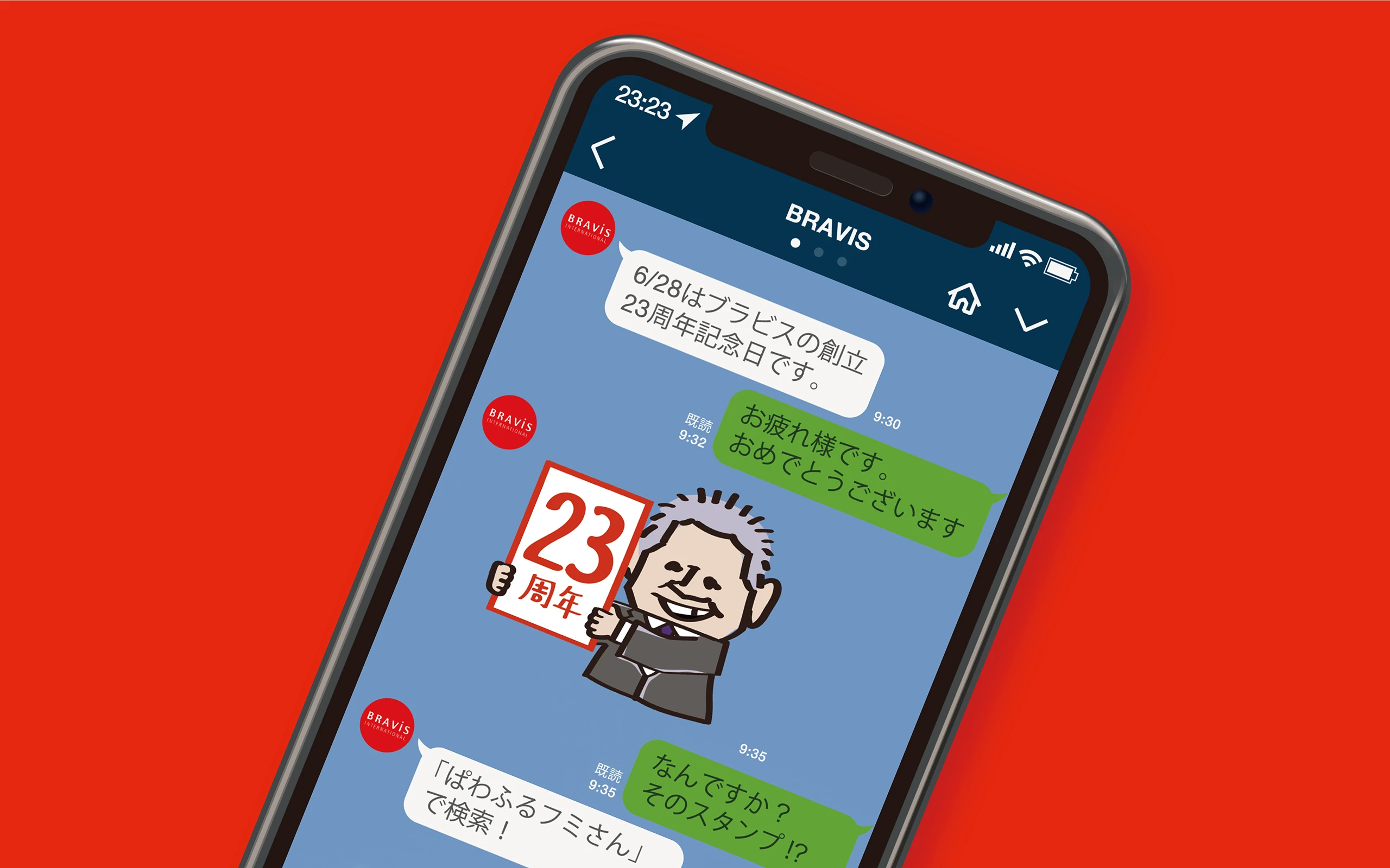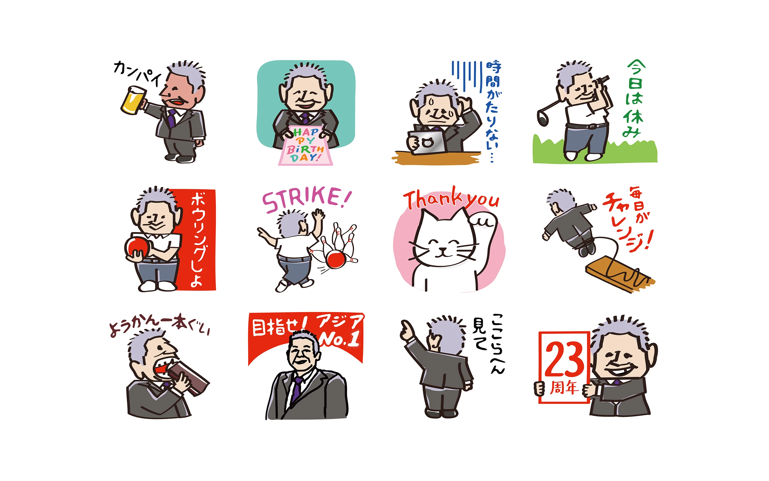 당사 대표인 사사다 후미를 캐릭터화하여 3D, LINE 스탬프 등으로 전개하여 보다 친근하게 다가갈 수 있도록 다양한 표정을 그려 넣었습니다. 캐릭터와 LINE 스탬프로 만들어 사내 커뮤니케이션 도구로 사용하거나 외부 인사말, 사내 행사 등에 자주 등장하고 있다. 개발 후, 다양한 분야에서 활용되고 있다.