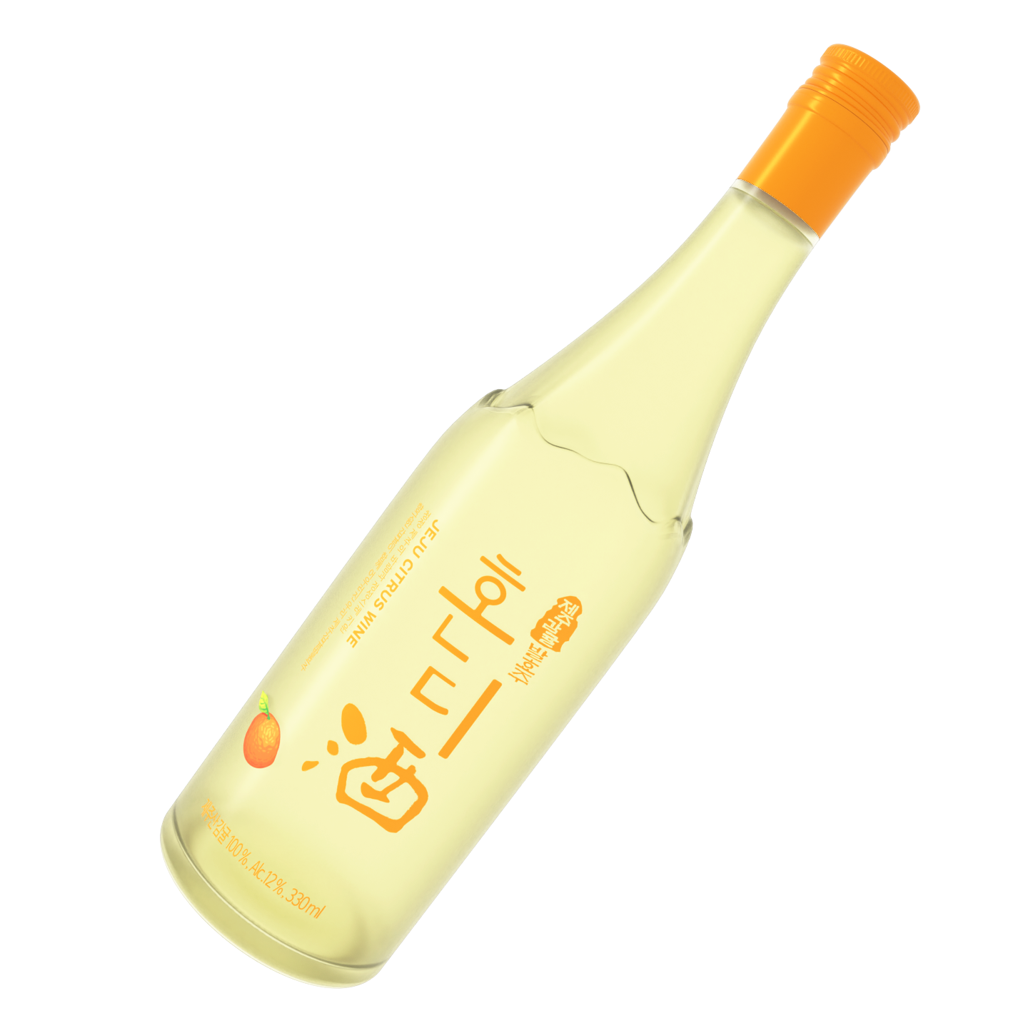일반적인 전통주와 차별화 하고 젊은 전통주의 이미지를 지향하기 위해 길고 부드러운 볼륨이 있는 형태의 병으로 디자인 하였습니다. 재질은 은은한 감귤의 향이 시각적으로도 느껴질 수 있도록 술이 은은하게 비치는 반투명 유리를 사용하였습니다. 병의 목 부분이 시작되는 곳에는 한라산의 능선을 표현하여 제주만의 지역적 상징성을 담았고, 로고와 패키지에 감귤의 컬러를 사용하여 친근한 이미지를 표현하였습니다.