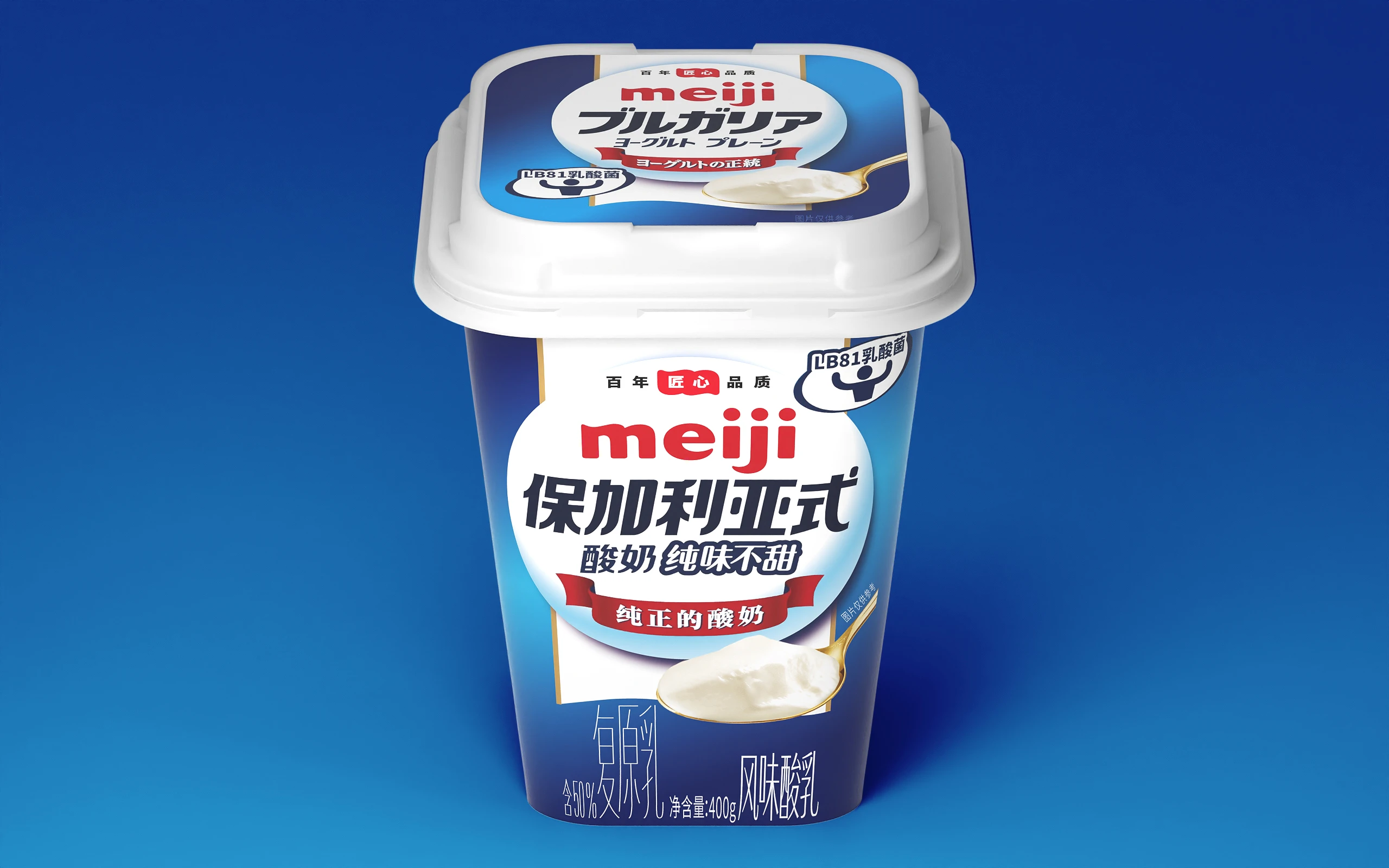일본에서 출시된 메이지 불가리아 요구르트는 2023년 출시 50주년을 맞이하여 약 10년 만에 새로운 제조법을 도입했다. 패키지 디자인도 오랫동안 로고 패널에 사용했던 파란색 라인을 없애고, 부드러운 요구르트를 연상시키는 입체감 있는 흰색의 정사각형 패널로 리뉴얼했다. 또한 해외에서도 브랜드 통일성을 유지하기 위해 중국 시장의 패키지 디자인도 리뉴얼했다.