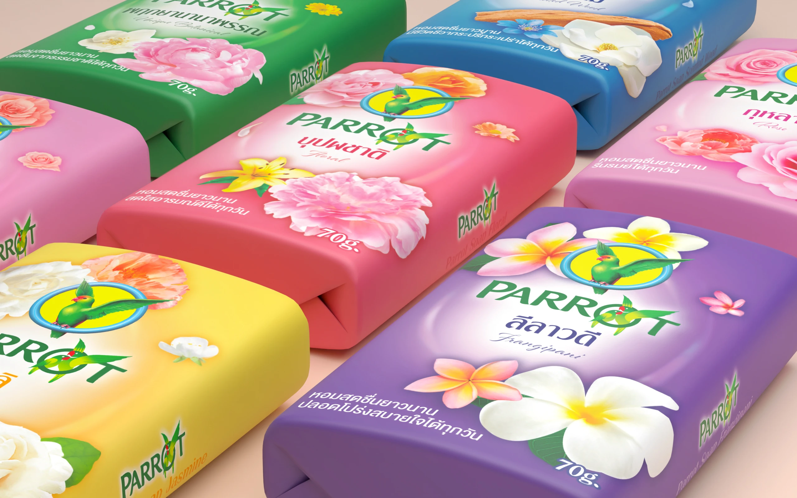 태국의 비누 ‘파롯 보태니컬(PARROT Botanicals)은 80년 이상 이어져 온 초 롱셀러 브랜드다. 편의점이나 슈퍼마켓 등에서도 판매되고 있으며, 태국 여행 기념품으로 일본인에게도 인기가 높은 상품이다.