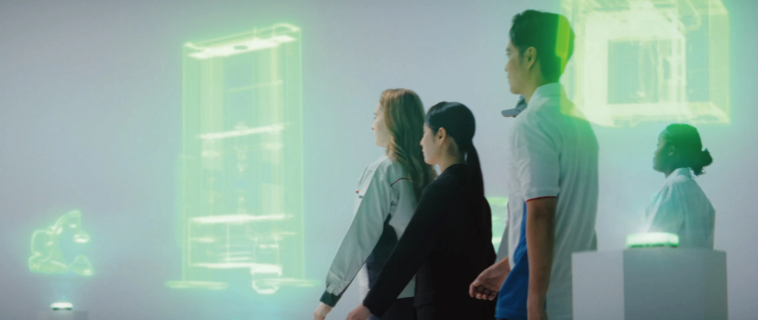 시마즈 겐조 1세대와 2세대 시마즈 겐조가 등장하여 직원이라면 누구나 눈길을 끄는 시작 부분. 창업 당시의 과학기술에 대한 열정이 현대의 직원들에게 계승되고, 후반부에는 그 열정이 세상을 더 좋게 변화시키는 원동력이 되고 있음을 묘사하고 있습니다. 시마즈제작소의 서브 그래픽 ‘Craftec Wing’을 모티브로 만든 광선을 영화 곳곳에 그려 넣음으로써 시마즈제작소만의 영화로 완성했습니다. 창업자를 등장시켜 그 뜻을 다시 한 번 되돌아봄으로써 기업으로서의 존재 의의와 일에 대한 자부심을 재인식하고 동기를 부여하는 것을 목표로 했습니다. 실제로 공개된 후에도 시마즈 사내에서 높은 평가를 받아 각처에서 활용되고 있습니다.