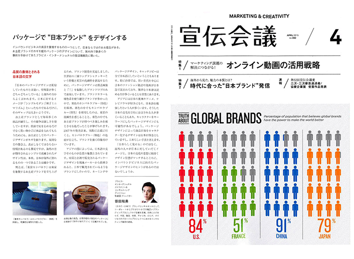 선전회의 4월호에 ‘패키지로 일본 브랜드를 디자인하다’라는 제목으로 당사 전략&컨설팅 부문 디렉터 사사다 히유의 인터뷰 기사가 게재되었습니다.