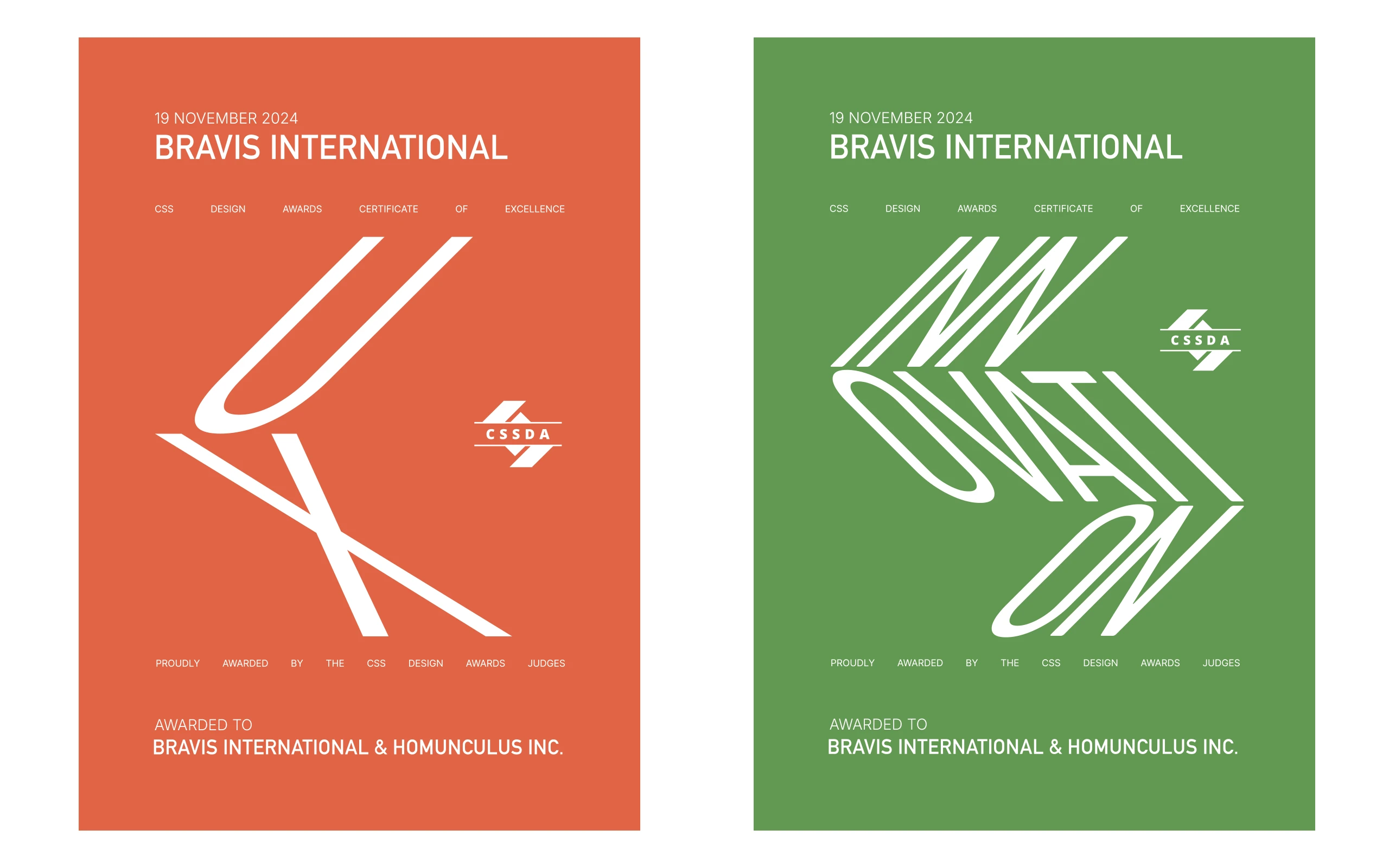 리뉴얼된 브라비스의 기업 웹사이트가 국제 디자인 어워드인 ‘CSS Design Awards’의 특별상인 ‘SPECIAL KUDOS’를 수상했습니다. 또한, 일반 투표를 포함한 심사에서는 ‘Best UI Design’, ‘Best UX Design’, ‘Best Innovation’ 등 3개 부문을 수상하여 총 4개의 상을 받았습니다.